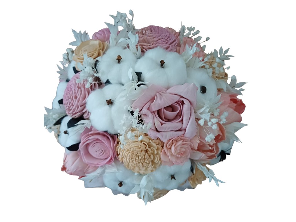 Každý květ je ručně vyřezávaný a pečlivě aranžovaný, aby působil jako skutečný. Kombinace jemných odstínů, kvalitního materiálu a precizního zpracování vytváří dojem živé kytice, která nevyžaduje žádnou péči.