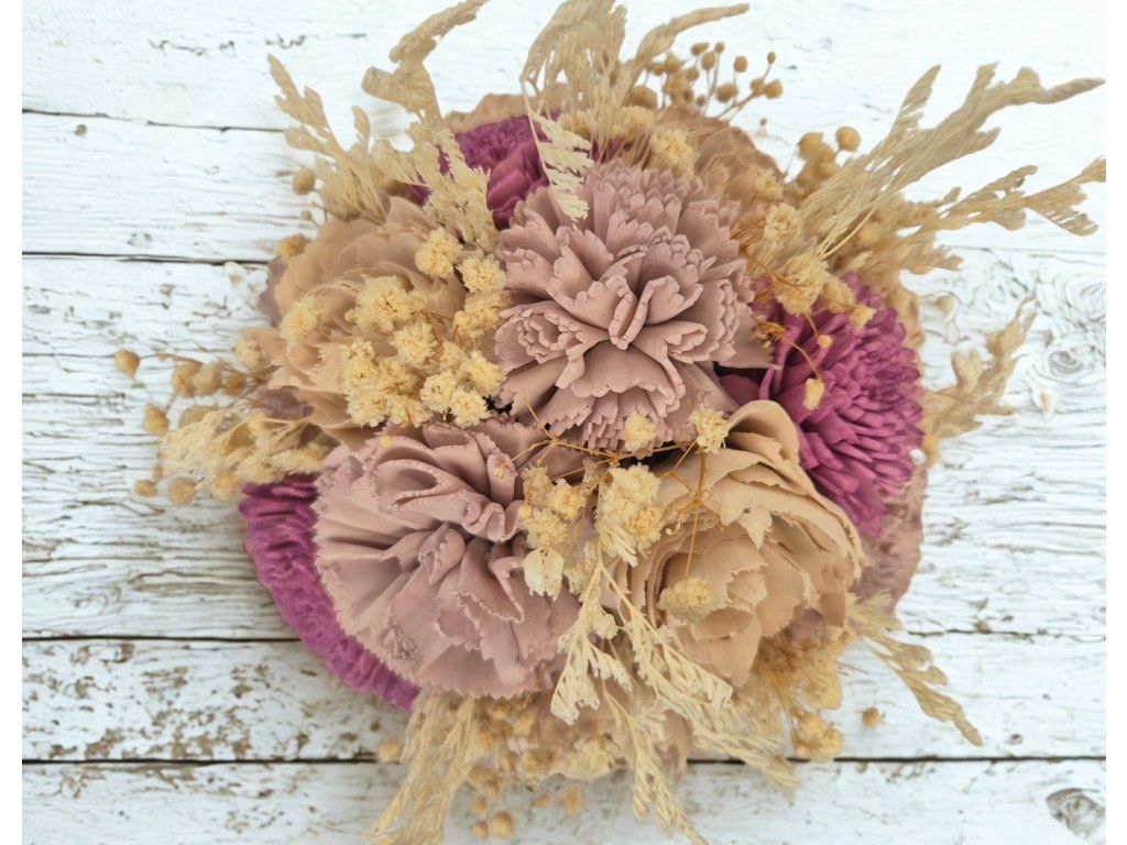 Každý květ je ručně vyřezávaný a pečlivě aranžovaný, aby působil jako skutečný. Kombinace jemných odstínů, kvalitního materiálu a precizního zpracování vytváří dojem živé kytice, která nevyžaduje žádnou péči.